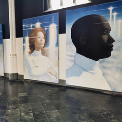 In the paintings, nostalgia curdles into obsession. Soviet space dreams are pulled down from their Cold War pedestal and interrogated—turned inside out, smeared with longing, absurdity, and loss. These are not patriotic fantasies; they are elegies for futures that never arrived. A cosmic mourning, rendered in pigment.